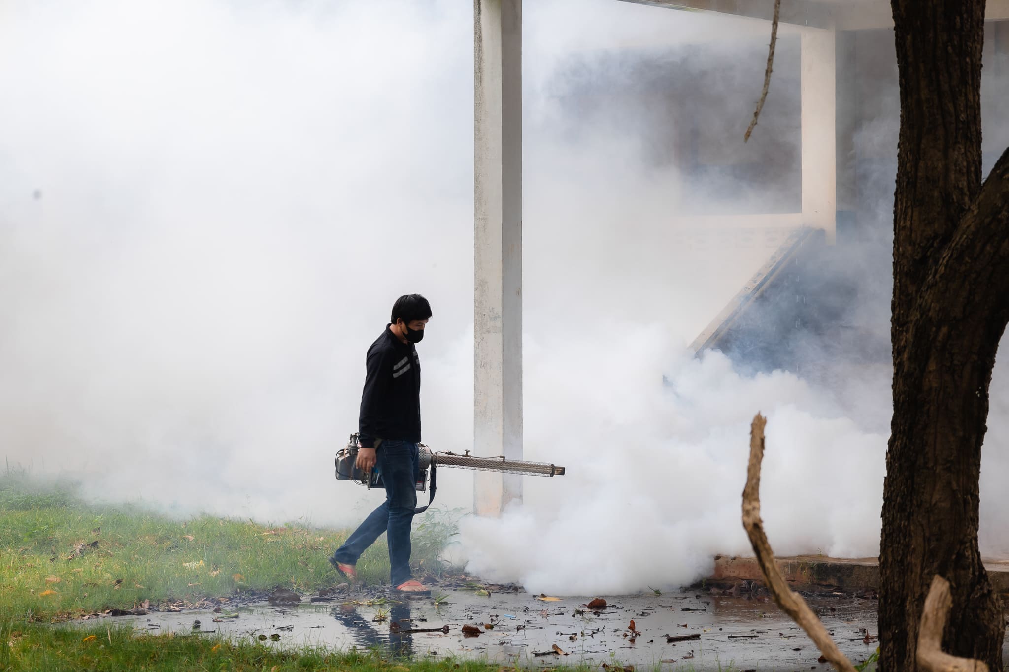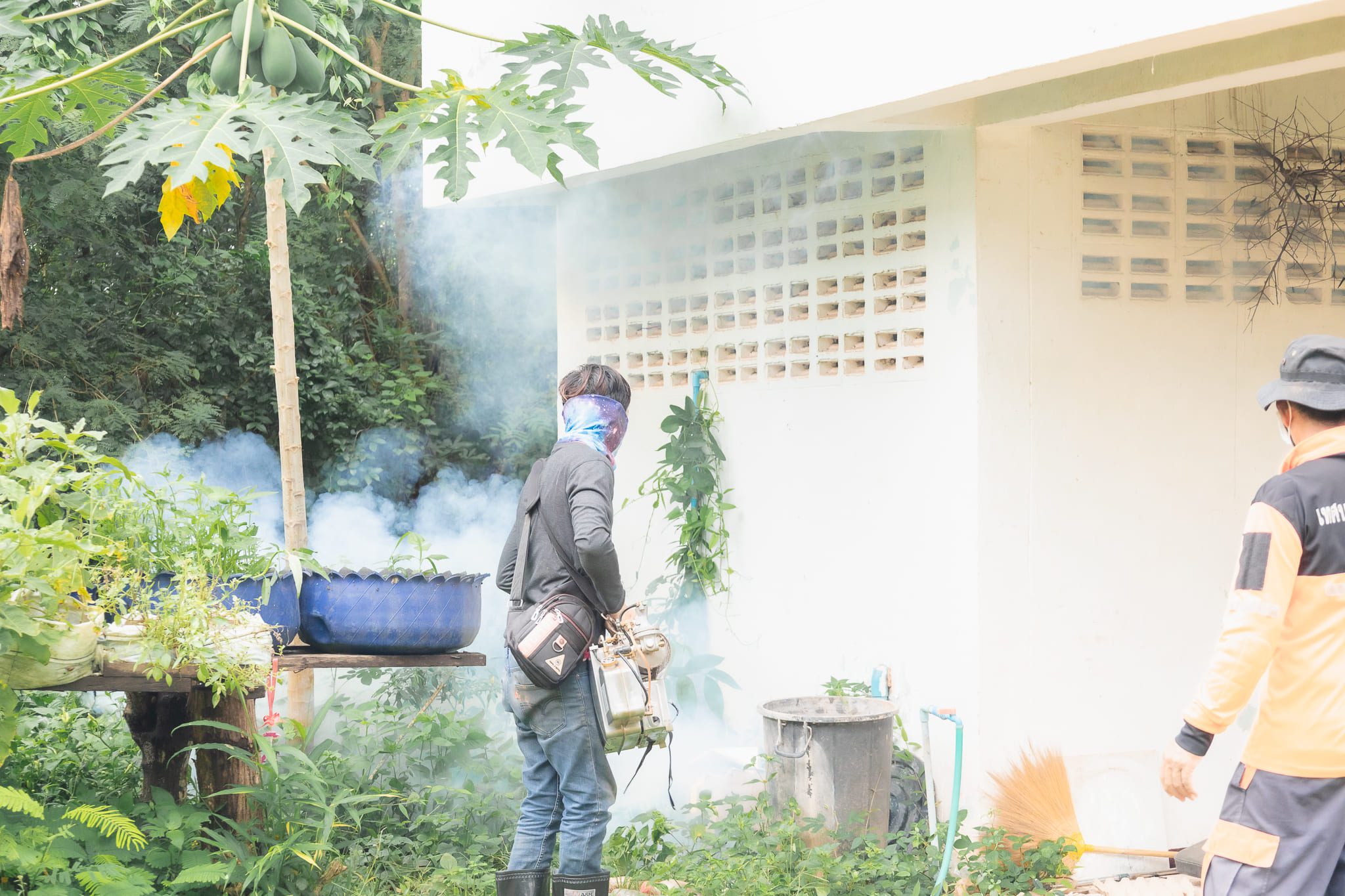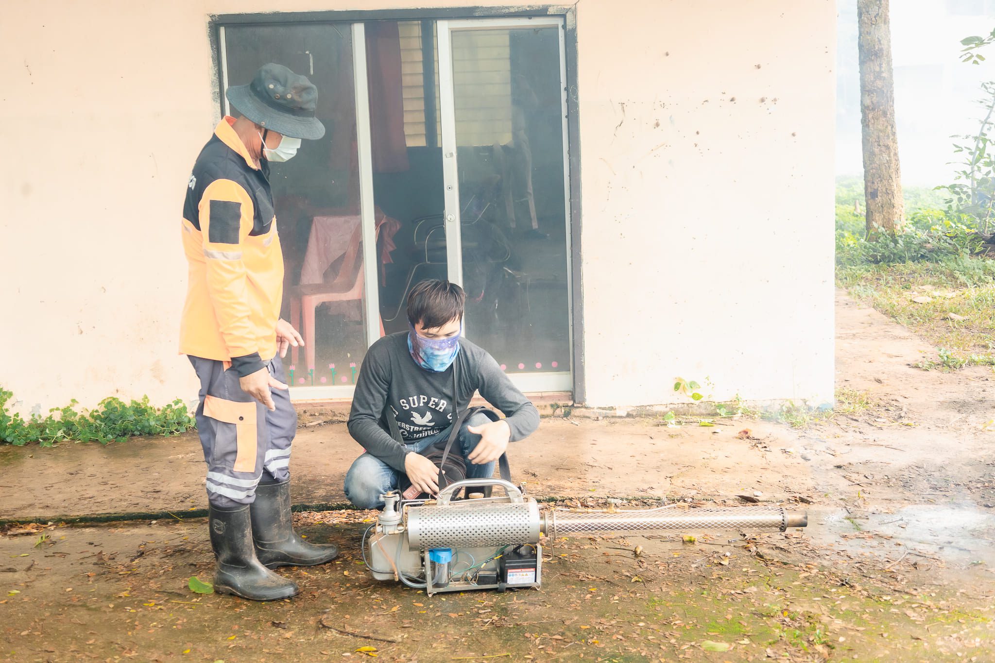 เทศบาลตำบลบ้านยวด ฉีดพ่นหมอกควันกำจัดยุงลาย