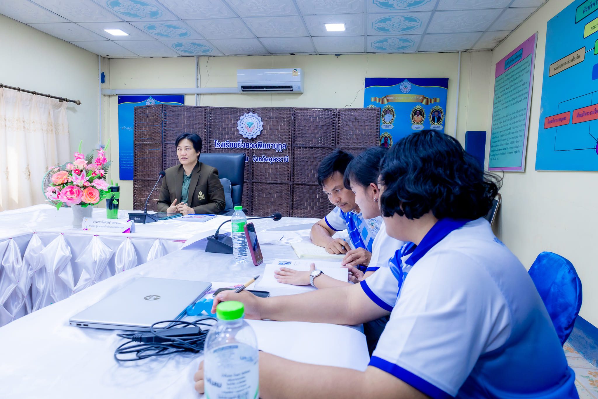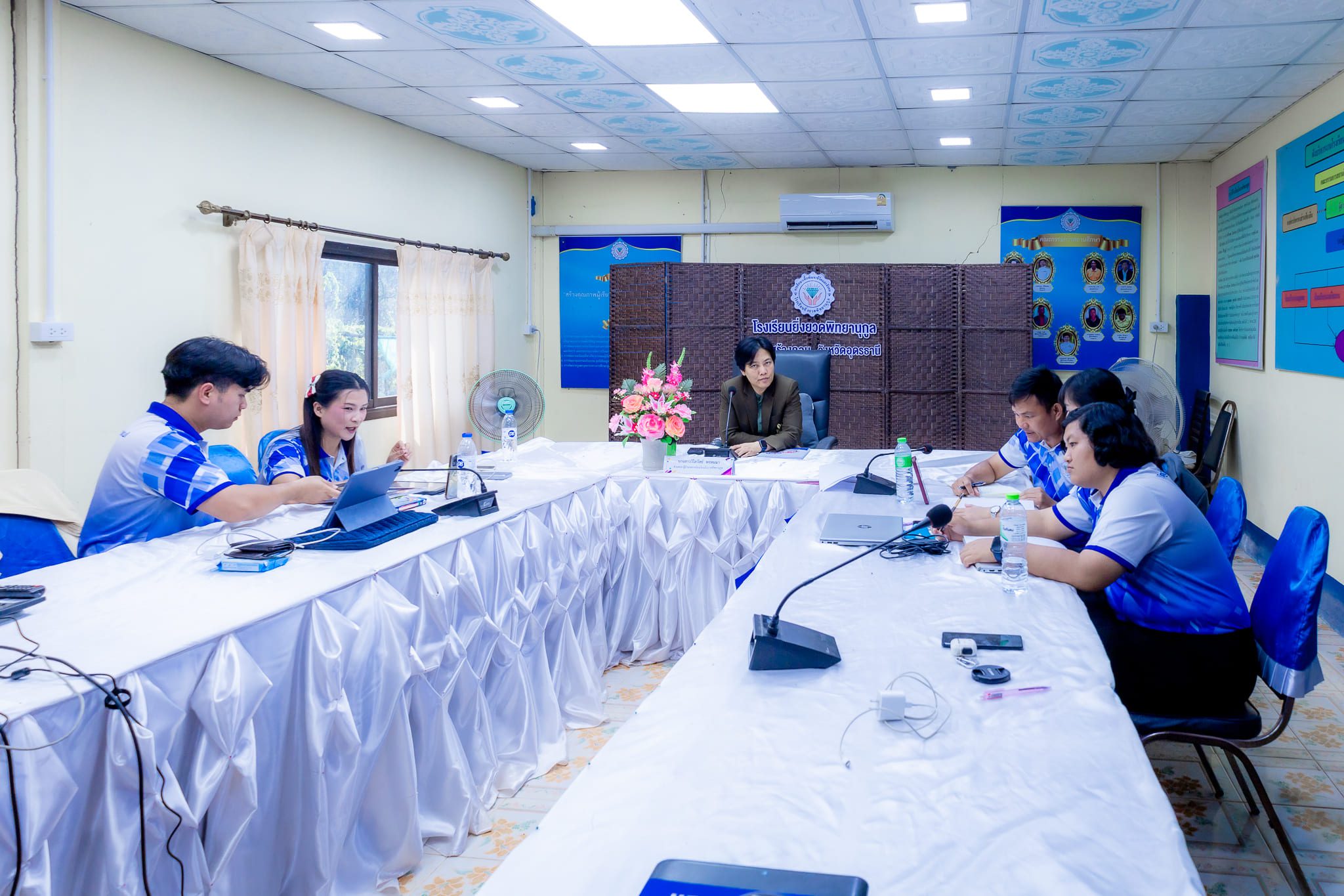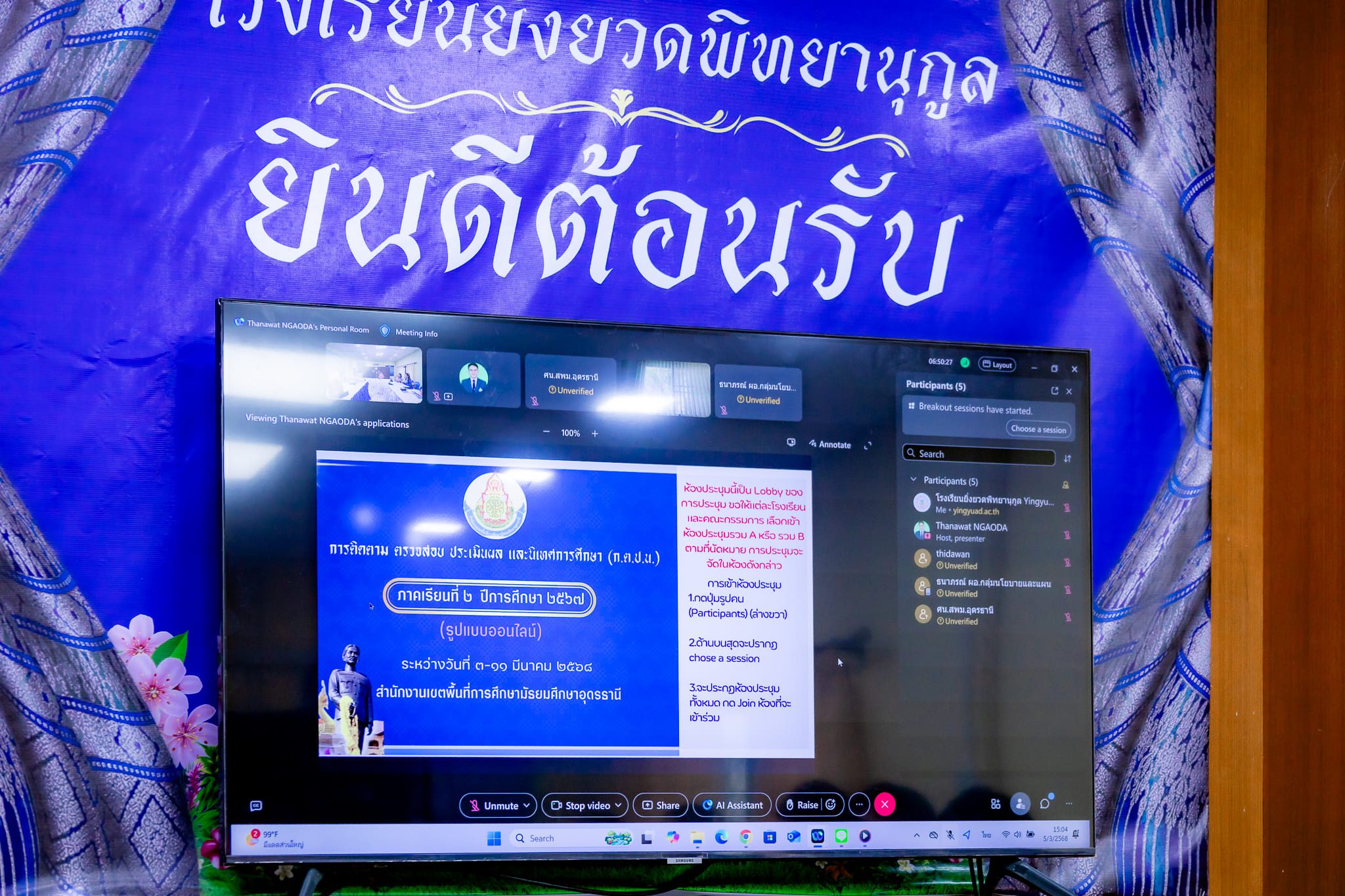วันที่ 5 มีนาคม 2568 เวลา 15:30 น. นางสาววิไลวัลย์ พรหมมา ผู้อำนวยการโรงยิ่งยวดพิทยานุกูล พร้อมด้วยข้าราชการครูและบุคลากรทางการศึกษา ร่วมรับการประเมินการติดตาม ตรวจสอบ ประเมินผล และนิเทศการศึกษา (ก.ต.ป.น.) ในรูปแบบออนไลน์ ภาคเรียนที่ 2 ปีการศึกษา 2567 สำนักงานเขตพื้นที่การศึกษามัธยมศึกษาอุดรธานี ณ ห้องประชุมโรงเรียนยิ่งยวดพิทยานุกูล