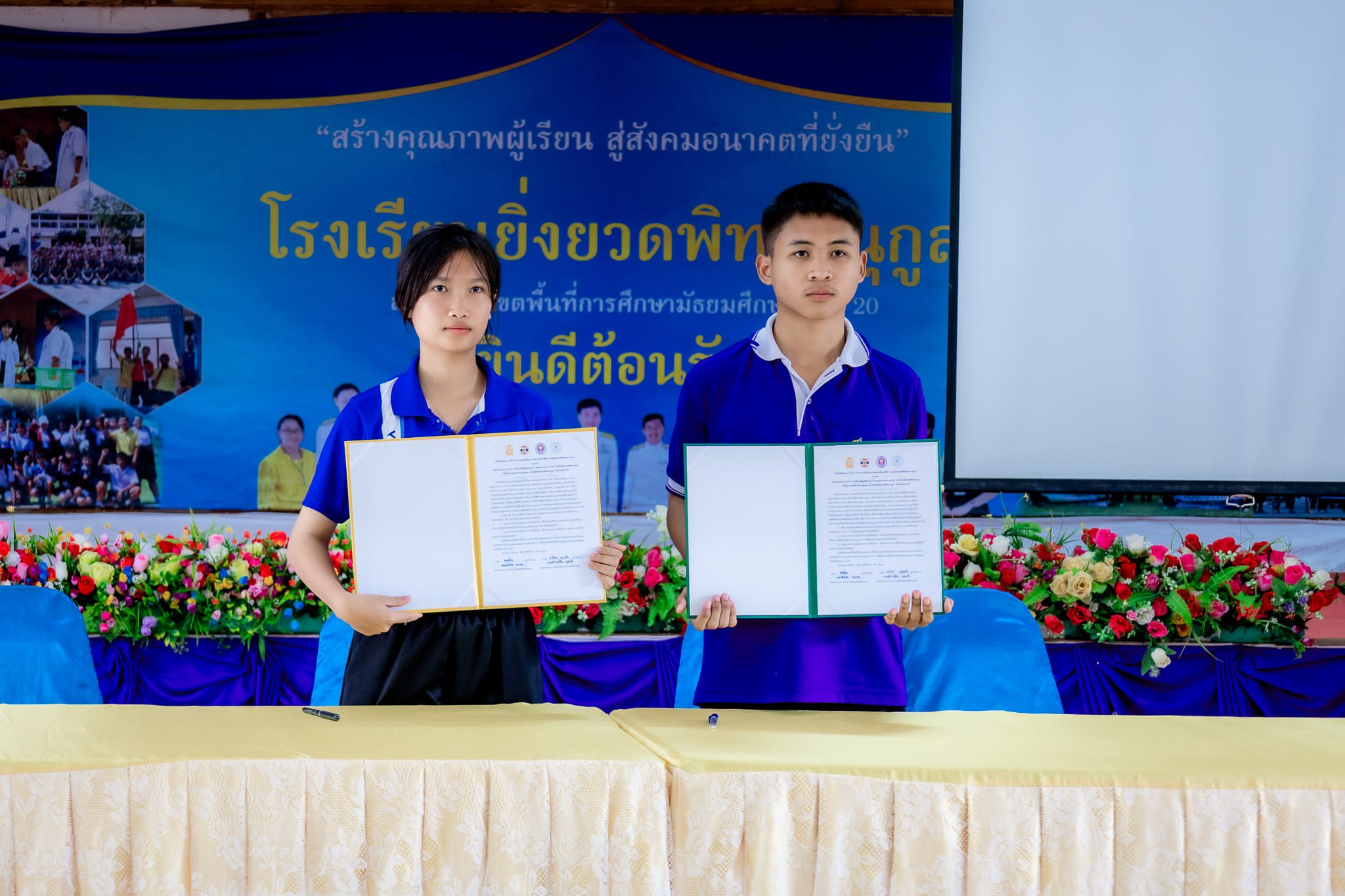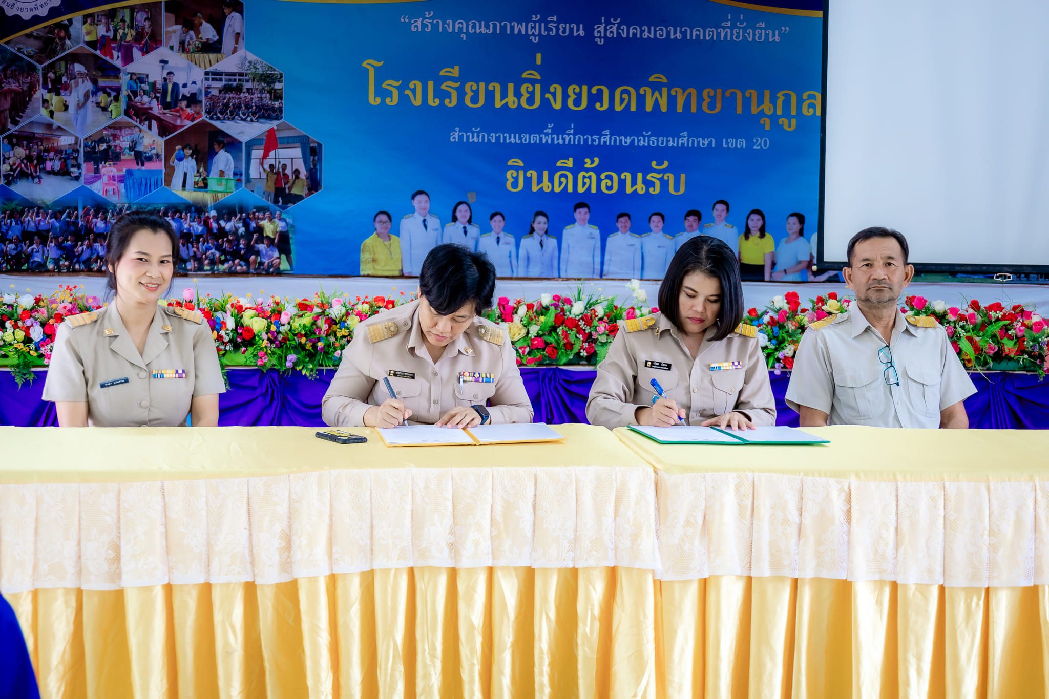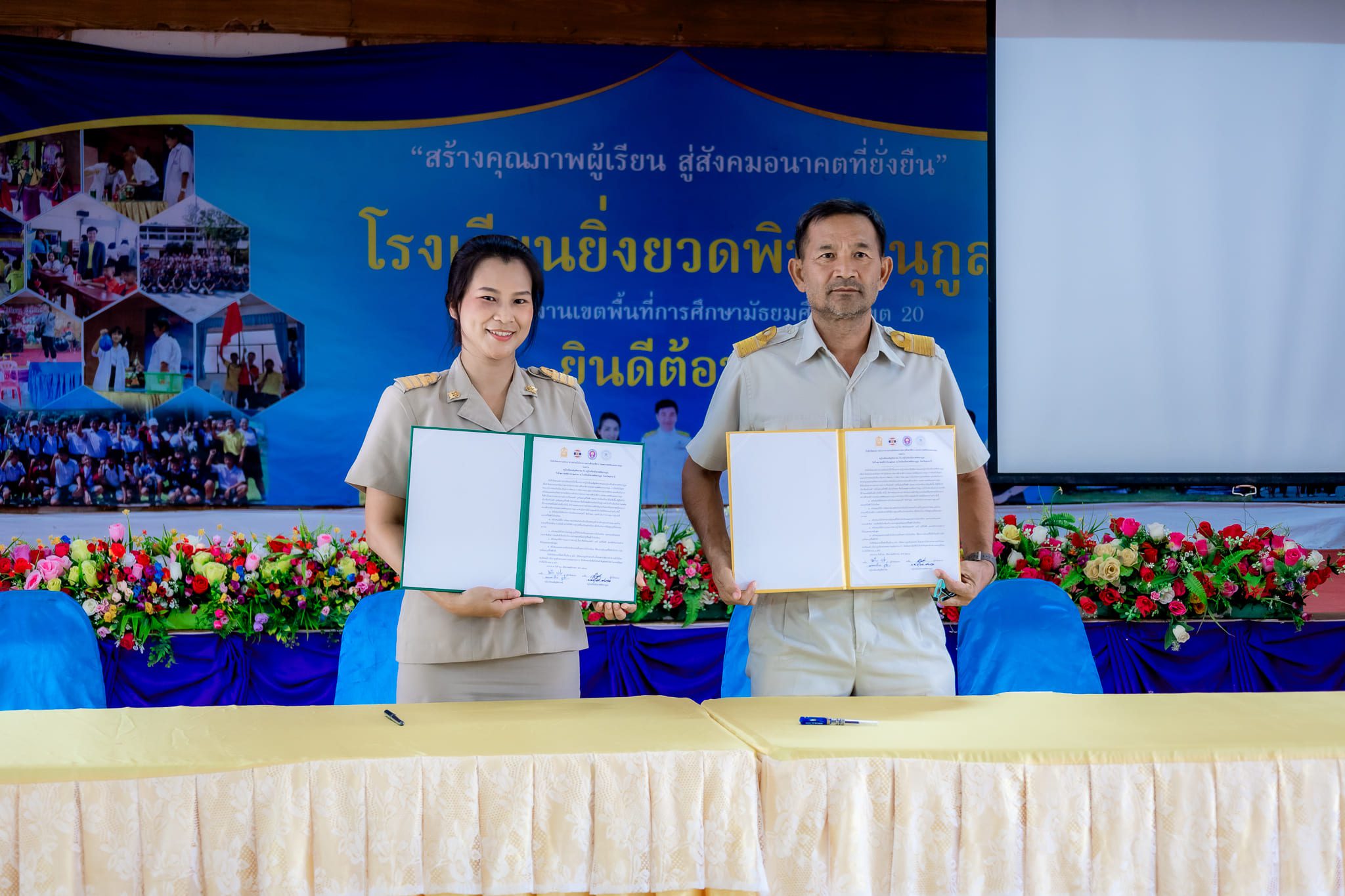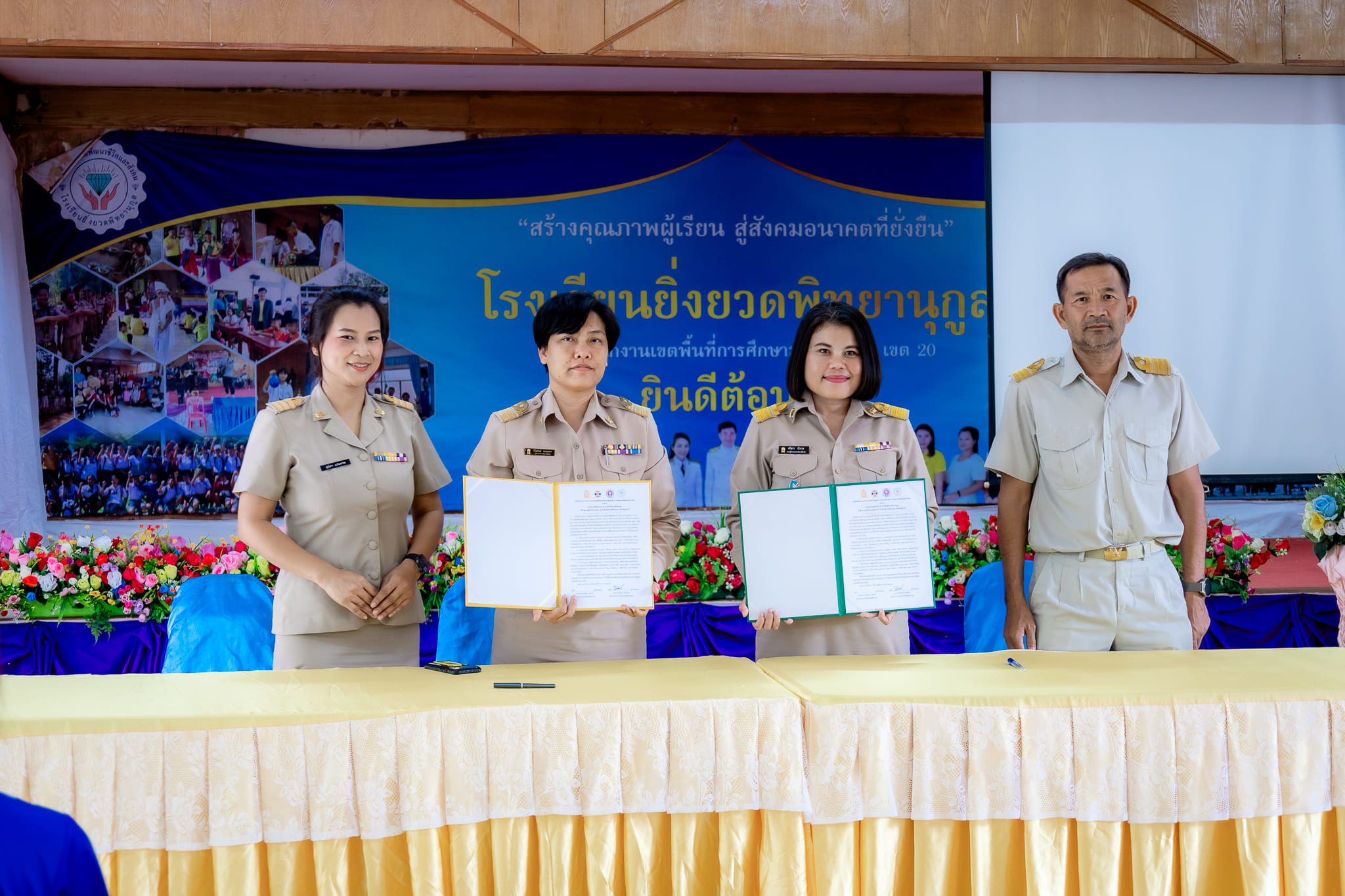 วันที่ 26 พฤศจิกายน 2567 เวลา 14:00 น. นางสาววิไลวัลย์ พรหมมา ผู้อำนวยการโรงยิ่งยวดพิทยานุกูล พร้อมด้วยข้าราชการครูและบุคลากรทางการศึกษา และสภานักเรียน ทำบันทึกข้อตกลงความร่วมมือ (MOU) กับสถานศึกษาที่ขอรับการประเมินโครงการสถานศึกษาสีขาว ปลอดยาเสพติดและอบายมุข เพื่อรับรางวัลระดับเหรียญทอง กับโรงเรียนเพ็ญพิทยาคม ณ ห้องประชุมยิ่งกาญจน์ โรงเรียนยิ่งยวดพิทยานุกูล