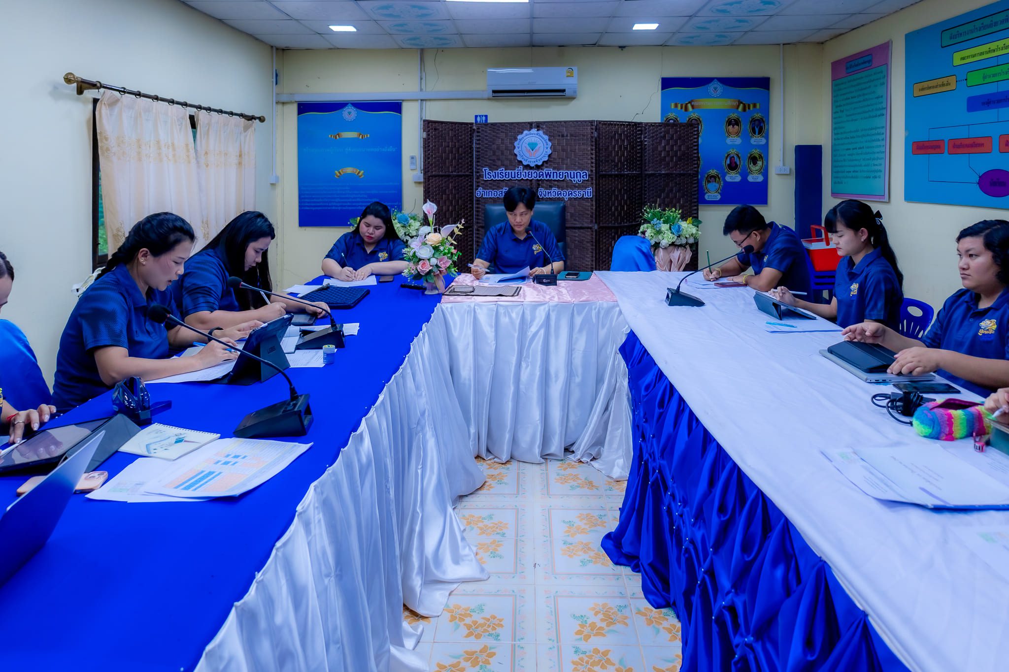 วันที่ 27 สิงหาคม 2568 เวลา 15:30 น. นางสาววิไลวัลย์ พรหมมา ผู้อำนวยการโรงเรียนยิ่งยวดพิทยานุกูล เป็นประธานในการประชุมข้าราชการครูและบุคลากรทางการศึกษา ประจำเดือนสิงหาคม 2568 ณ ห้องประชุมโรงเรียนยิ่งยวดพิทยานุกูล เพื่อชี้แจงนโยบายและแนวทางการดำเนินงานของโรงเรียน รวมถึงการติดตามผลการปฏิบัติงาน การเตรียมความพร้อมในการจัดกิจกรรมการเรียนการสอน และการพัฒนาคุณภาพผู้เรียนให้สอดคล้องกับเป้าหมายทางการศึกษา โดยมีคณะครูและบุคลากรเข้าร่วมประชุมอย่างพร้อมเพรียง บรรยากาศเป็นไปด้วยความเรียบร้อย สะท้อนถึงความร่วมมือและความมุ่งมั่นในการพัฒนาการศึกษา