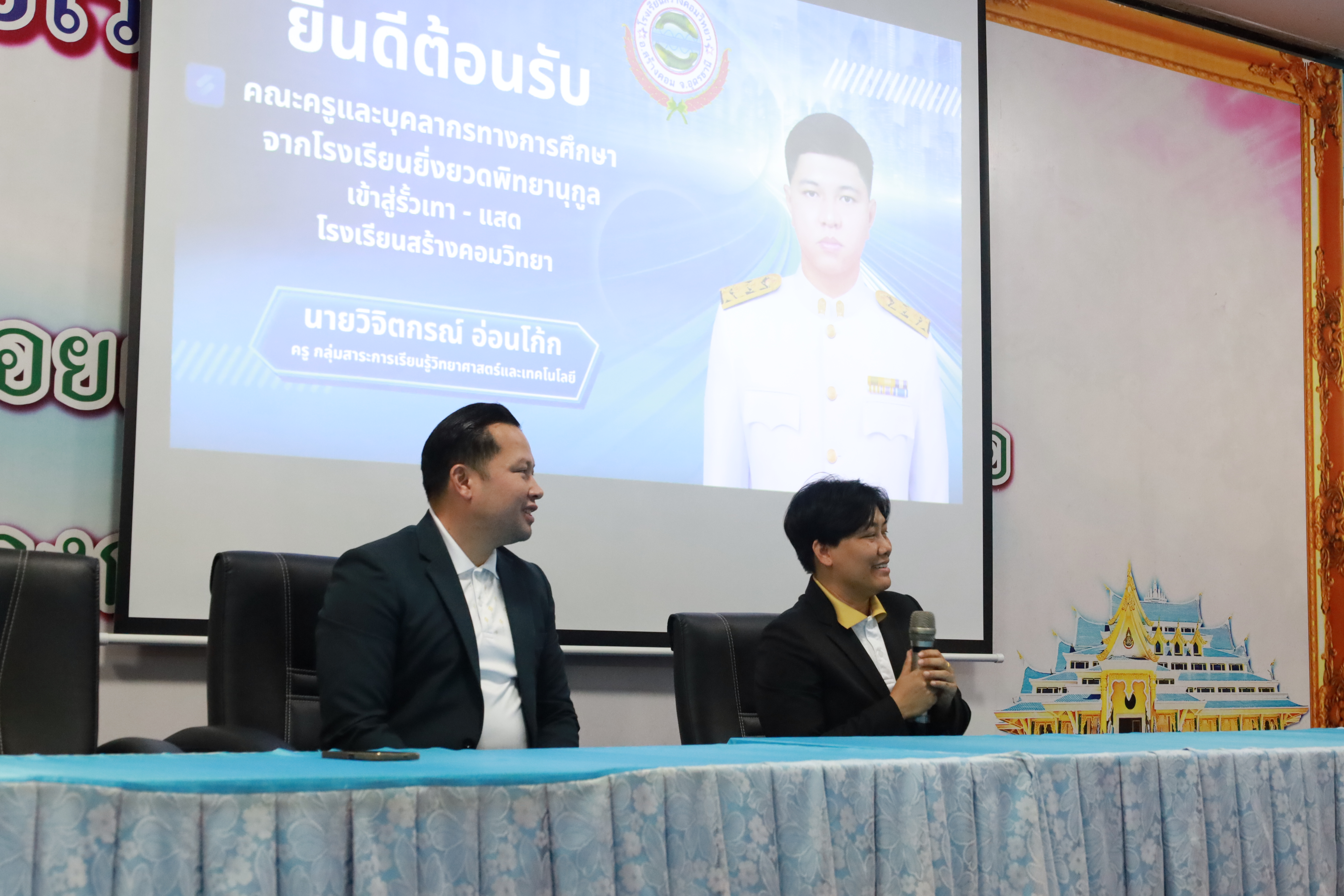 ในวันที่ 21 พฤศจิกายน 2568 นางสาววิไลวัลย์ พรหมมา ผู้อำนวยการโรงเรียนยิ่งยวดพิทยานุกูล พร้อมด้วย คณะครู และบุคลากรทางการศึกษา โรงเรียนยิ่งยวดพิทยานุกูล ได้เดินทางไปเยี่ยมชม แลกเปลี่ยนเรียนรู้ ศึกษาดูงานโรงเรียนสร้างคอมวิทยา และแสดงความยินดีและส่งตัว นายนายวิจิตกรณ์ อ่อนโก้ก ข้าราชการครู กลุ่มสาระการเรียนรู้วิทยาศาสตร์และเทคโนโลยี เนื่องในโอกาสได้ย้ายไปดำรงตำแหน่งครู ณ โรงเรียนสร้างคอมวิทยา อำเภอสร้างคอม จังหวัดอุดรธานี โดยได้รับการต้อนรับอย่างดียิ่งจากคณะผู้บริหาร คณะครู และบุคลากรของโรงเรียนสร้างคอมวิทยา